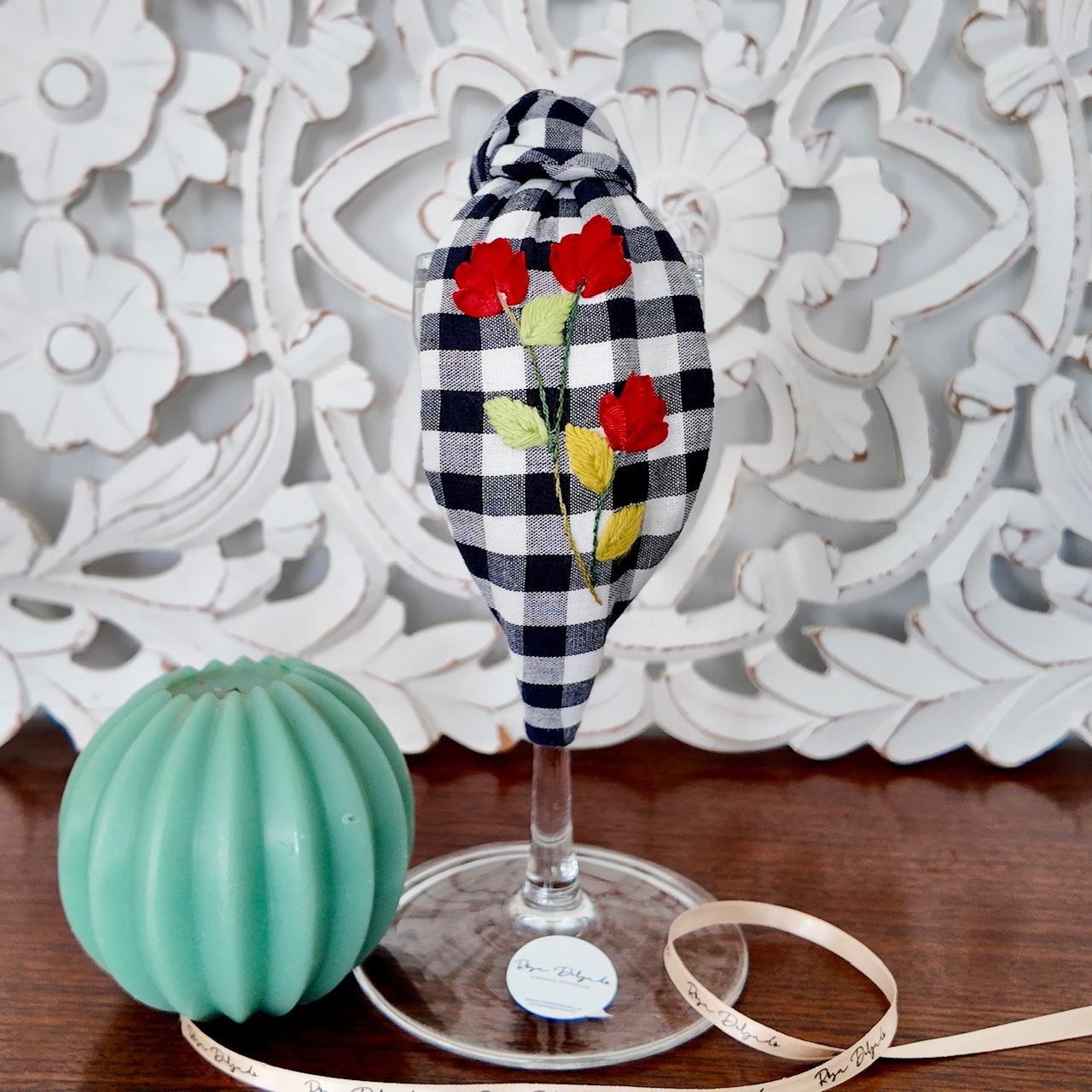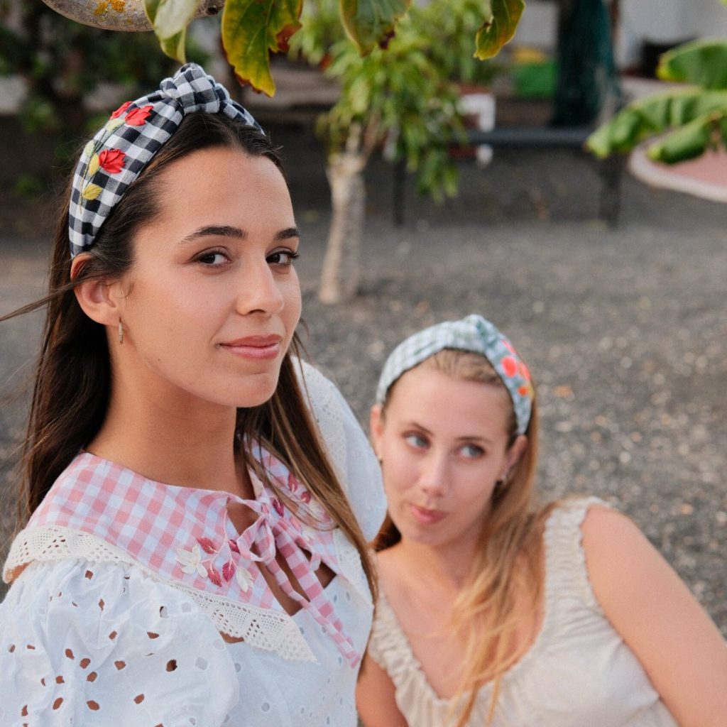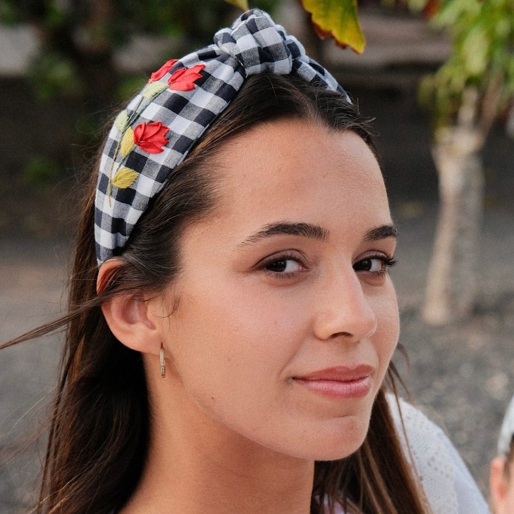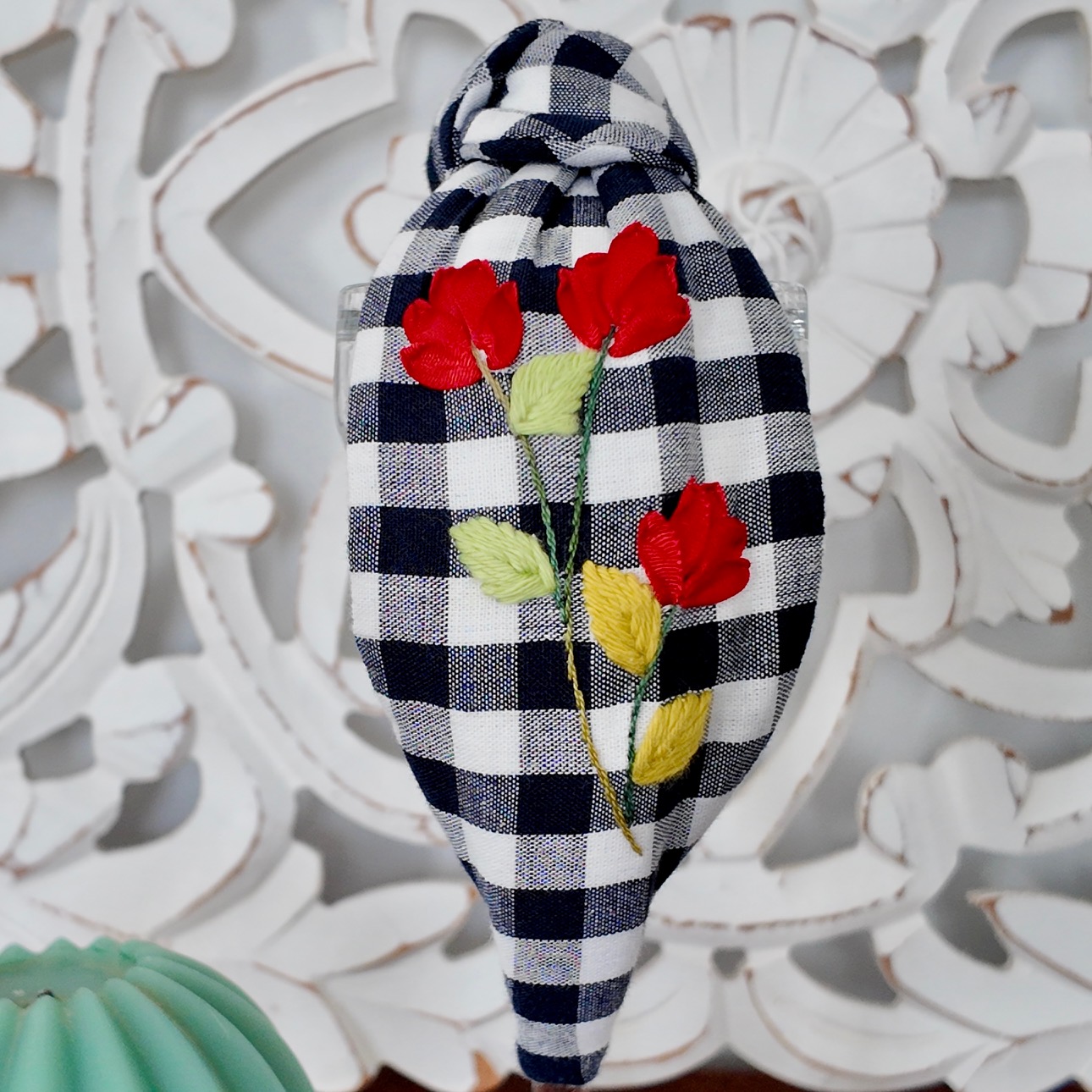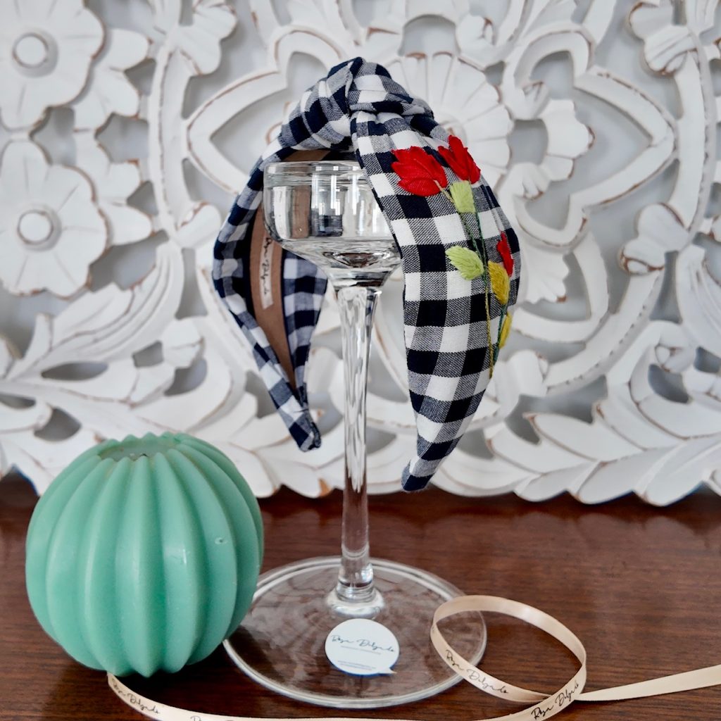 Diadema nudo vichy azul marina.