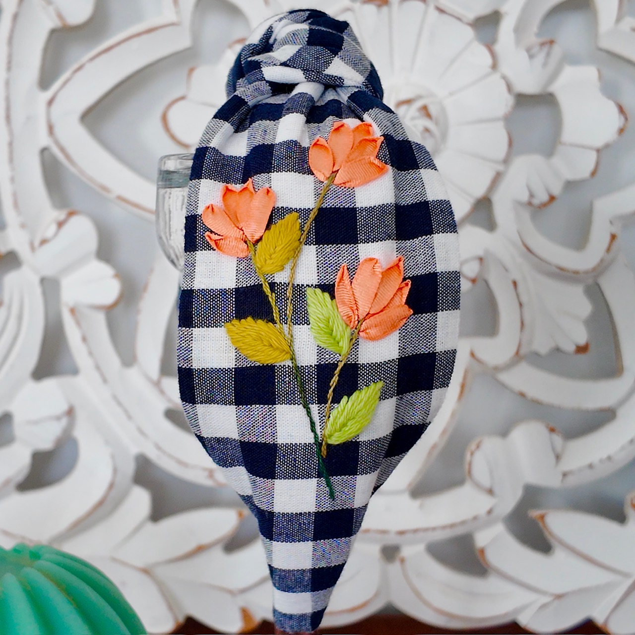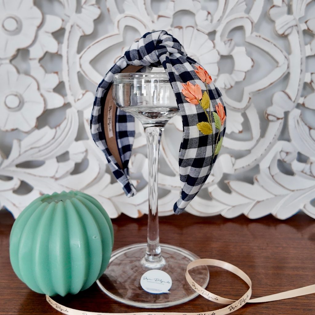 Diadema nudo vichy azul marina.