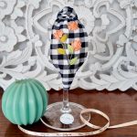 Con flores bordadas a mano en tonos naranjas.